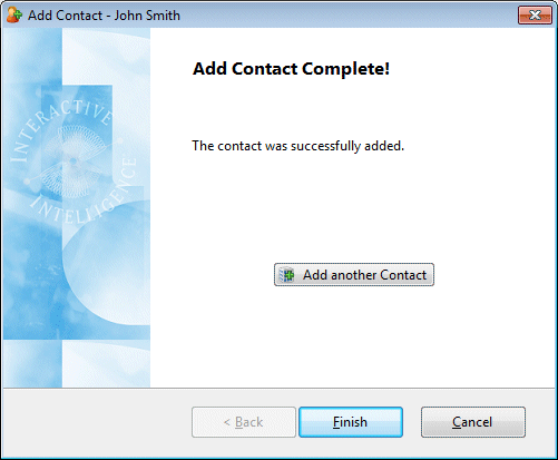 If the Contact Resolution process or your own search criteria cannot find the appropriate contact, you can create a contact. To add a contact to the Interaction Tracker database, you need a Tracker Access License and the appropriate Tracker Policy Security rights. For more information, see your CIC administrator.