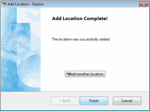Result: The Summary page of the Add Location Wizard appears.