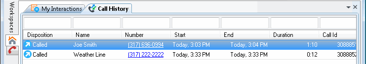 History is tracked for calls that appeared in My Interactions. These are calls that were inbound to you, calls placed by you, calls transferred to you, and calls used to retrieve voice mail messages.