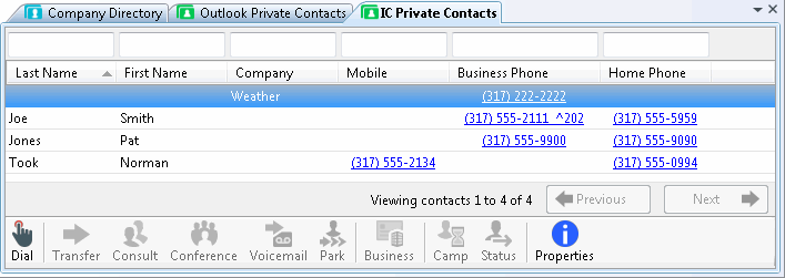 You can click any of the phone number hyperlinks in the CIC client to dial a contact. Phone number hyperlinks appear in directory views and in the contact Properties dialog box.
