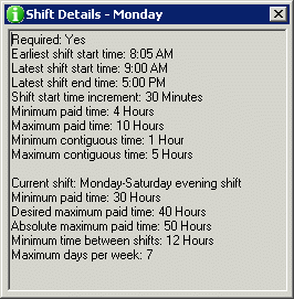 Select one day from the Day control, right-click and select View shift details to review information about your work shift.