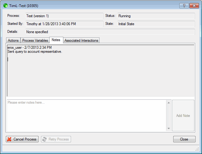 You can add one or more notes to a process instance. You could use these notes to record additional information or to document actions taken in addition to process steps.