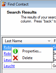 Find a Tracker Contact. In the Search Results page of the Find Contact Wizard, do one of the following: