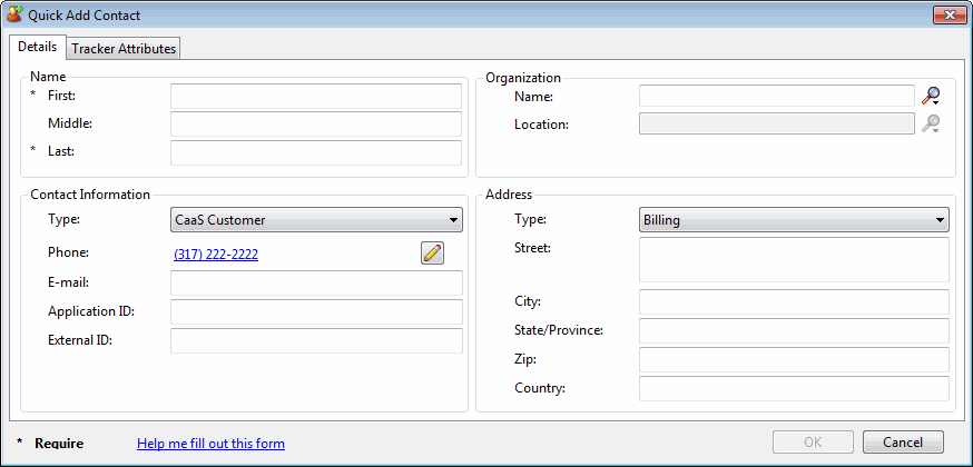 When you "quick add" a new Tracker contact, you need to specify only the most important Tracker contact information.