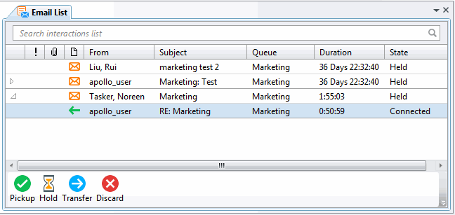 Note: If you have the appropriate rights and your CIC administrator enabled the Threaded Email feature, you can see a list of all email messages that are related to one another. Related email messages have the same Conversation ID. For more information, see Use the Conversation History Tab.