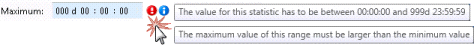 Minimum time value, expressed in hours, minutes and seconds (hh:mm:ss) Maximum time value, expressed in days, hours, hours, and minutes (ddd:hh:mm:ss) |