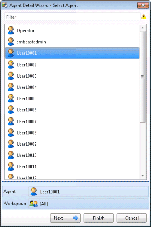 ) informs that more agent names are available. In that case, typing part of an agent's name in the Filter box locates the correct agent. When 20 or less agents exist in the system, the filter is not shown.