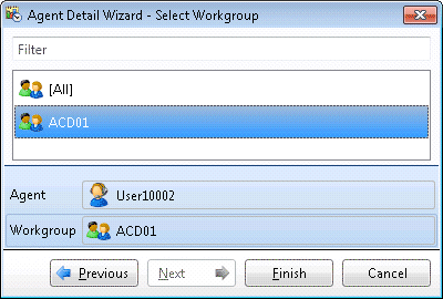 Click to select a workgroup by name, or select [All] for all workgroups this agent is a member of. Optionally use the Filter box to locate specific workgroups by typing starting characters of the name.