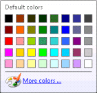 Click the Color control to open a menu of default colors. ![]() Select a default color or click More colors… to select custom colors from a secondary Colors dialog that allows selection of Standard Windows colors, or any combination selected using a slider control. To apply a custom color selection, click OK. |