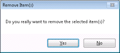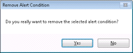 Select the alert to remove by clicking a row below Static Parameters. The click Remove. You are asked to confirm removal of the selected alert condition:
