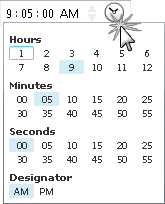 To set a time, click the clock icon. Then set the time of day by choosing the hour, minute, second, and AM/PM designator.