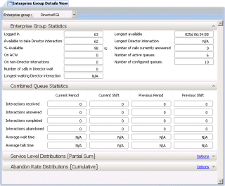 Shows service level, abandon and queue statistics about an Enterprise Group. |