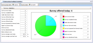The Interaction Feedback Statistics view displays real-time statistics for surveys that customers are in the process of taking. Real-time monitoring helps you understand what your company is doing well and what immediate actions might need to be taken to meet customer expectations. |