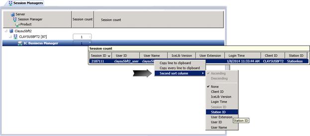 Right-clicking a row in the session count displays a context menu. Menu options include: