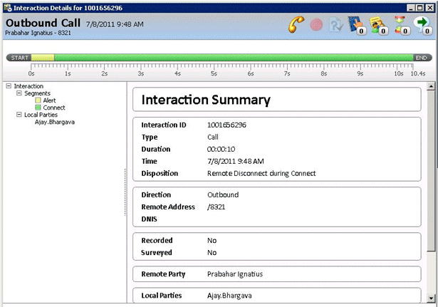 Two Party interactions involve two Interaction IDs, and two separate detail records. Two party interactions can be intercom, inbound or outbound. Consider an intercom call for example. The CIC user who initiates the record will have direction set as outbound. The CIC User who answered or received the interaction will have interaction as outbound. The following image shows the example Intercom interaction: