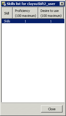 Then select Display skill set. Information about the users' skills is displayed in the Skills List dialog.
