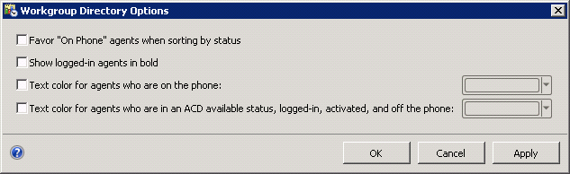 Favor "On Phone" agents when sorting by status will group all agents who are on the phone together at the top (or bottom) of the directory when the "Status" column is used to sort. If the directory is sorted by any other column, this option will have no effect.