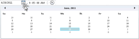Use From and To time selection controls to query for interactions that occurred between specific dates and times of day. To set a date, click the calendar icon. Then choose a day of the month. To set a time, click the clock icon. Then set the time of day by choosing the hour, minute, second, and AM/PM designator. |