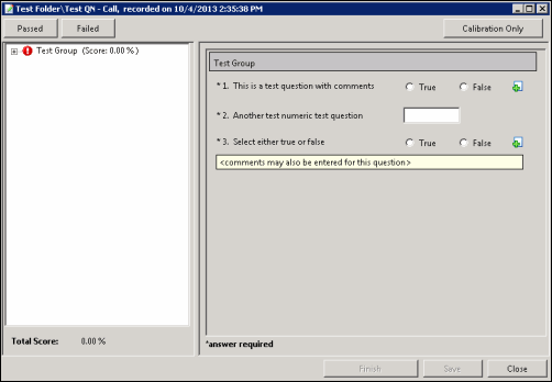 When you have completed scoring the interaction, click Finish. If the Scorecard has been failed, the Finish button is labeled Finish (Failed). The scored results are now available for reporting.