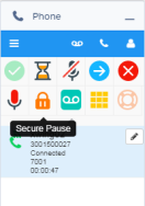 The length of the secure pause is configured in CIC by your administrator. The countdown timer remains visible on all screens inside the softphone.