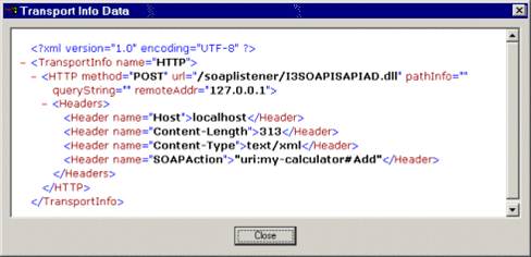 Displays a dialog containing the transport info data of the request. This option is enabled if the SOAP request notification included transport information data.
